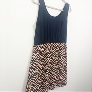 CHARMING CHARLIE | Navy Blue & Peach Chevron Print Mini Dress Women’s Size Large