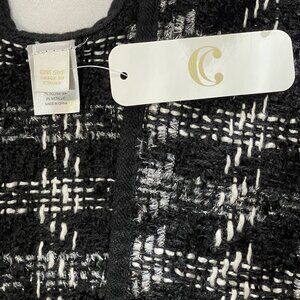 CHARMING CHARLIES ~ Women's Shrug / duster / poncho / open cardigan in black, white, & metallic threads. One size. Style #MAF18338WT.