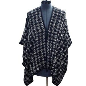 CHARMING CHARLIES Womens Sweater Poncho One Size Black White Metallic Shrug NEW