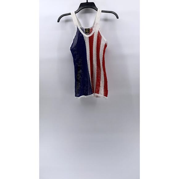 CHARMING COLORS Women's Blue-White-Red Scoop-Neck Open Crochet Knit Tank Top SZ M