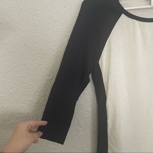 Charming Charlie’s navy blue and white baseball shirt is in like new condition. Shirt is lightweight and soft. Shirt is size small.