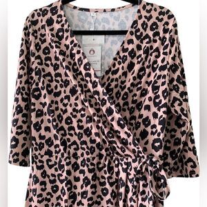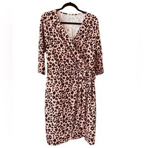 CHARMYI Women’s Casual Wrap Midi 3/4 Sleeve Sheath Cheetah Dress Size Small NWT