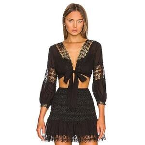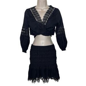 CHARO RUIZ IBIZA Vania Blouse and Fleur Mini Skirt Set in Black Sz S