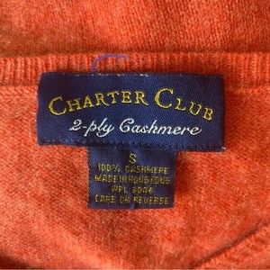 CHARTER CLUB Cashmere Sweater 2-ply V-neck Orange Coral