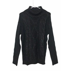 CHARTER CLUB Chunky knit Sweater Black Turtle Neck Metallic size M long sleeve
