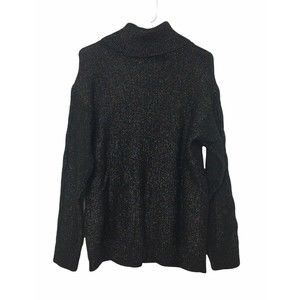 CHARTER CLUB Womens Black Long Sleeve Turtle Neck Sweater Metallic Sz M. See pictures for more details and measurements