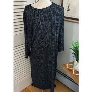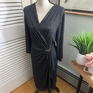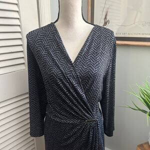 CHARTER CLUB Dress Womens 2X Gray Faux Wrap Slinky Geometric Travel Cocktail