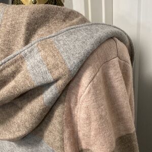 Gorgeous Charter Club hooded duster with front pockets. Thicker warm material in gently used condition - front snap button needs some reinforcement & some minor blemishes as seen in pics. Please comment below with any questions. Size Medium. Material in pics