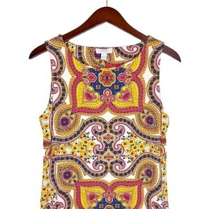 CHARTER CLUB Jersey Knit Shift Dress Size Medium in Bright Geometrical Print