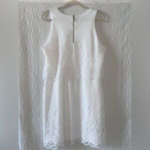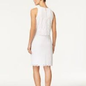 Charter Club presents a modern take on feminine chic with this sleeve sheath dress featuring a lace overlay and popover top for contemporary romantic appeal. Would make a beautiful elegant wedding dress!