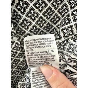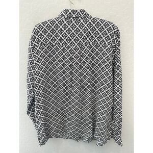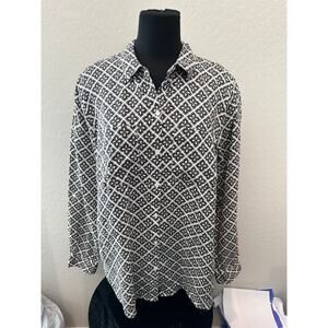 CHARTER CLUB Luxury Linen Shirt Black White Geometric Button Down Blouse Top XL