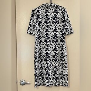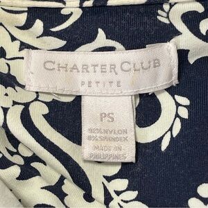 CHARTER CLUB NWOT Roll Up Sleeve Button Front Collared Dress in Navy and White