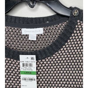 CHARTER CLUB Sweater Womens Large Gray Pink Pullover NEW Button Detail Metallic