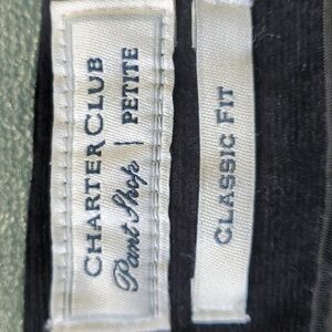 CHARTER CLUB, Velvet women's pants. BlCk with side zipper size 6P. Cuff. Nice.