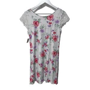 CHARTER CLUB WOMENS LACE-SLEEVE CHEMISE NIGHTGOWN BLOSSOMS FLORAL WHITE XS