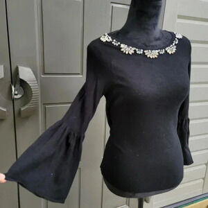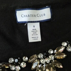 CHARTER CLUB black sweater embellished with jewels at neckline. Bell sleeves.