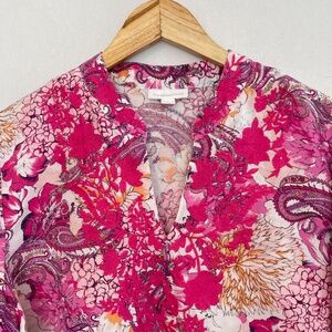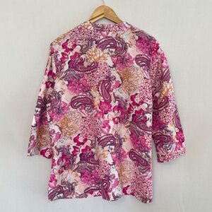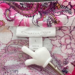 CHARTER CLUB Women’s Size Large Embroidered Pink Florals Linen Cotton Tunic