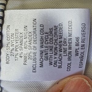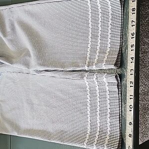 These pants are so cute for your spring, summer, resortwear, mature style wardrobe. 2 front pockets. 2 faux pockets in the back. Trip at the bottom. Size 12 waist flat measurement is 17". Inseam is 24". The top to bottom length is 35". Rise is 11/16. Consider making a bundle and get an even better offer.