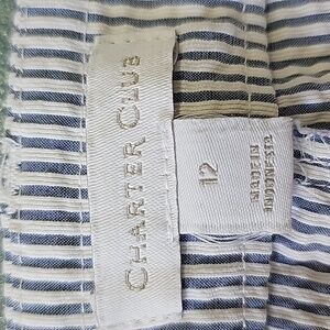 CHARTER CLUB, Y2K Womens Newport slim crop searsucker pants. Gray/white. SIZE 12