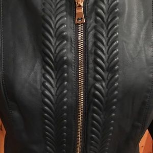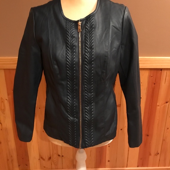 CHARTER CLUB petite navy faux leather jacket size PM, fully lined, zipper closure, machine wash cold (WC1242)