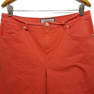 CHARTER Club Polka Dot Pants Size 12 Orange High Rise Straight Leg