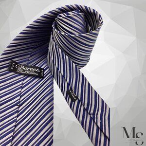 CHARVET PLACE VENDÔME Blue Gray Striped Silk Tie Made In France W: 3.75" EX COND