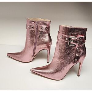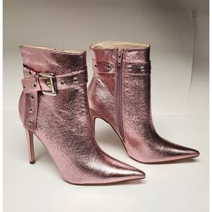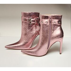CHASE AND CHLOE Adonis-3 Buckle Pointed Toe Bootie Metallic Pink Size US 6