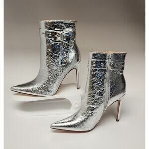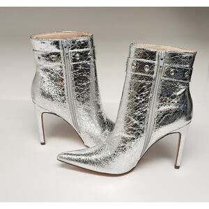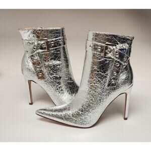 CHASE AND CHLOE Adonis-3 Buckle Pointed Toe Bootie Metallic Silver Size US 6.5