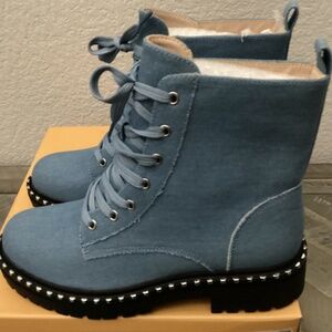 CHASE AND CHLOE Mira Studded Lug Combat Boot (Women), size 8