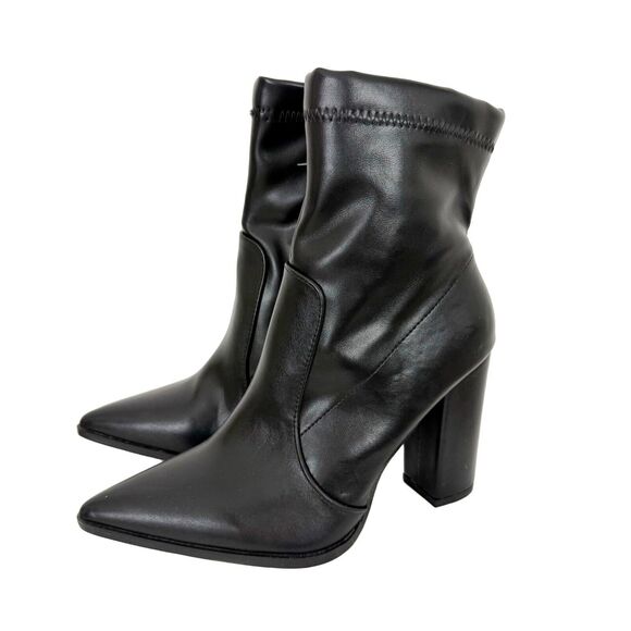 CHASE + CHLOE Block High Heel Faux Leather Pointed Boots 6 Black Zipper Ankle