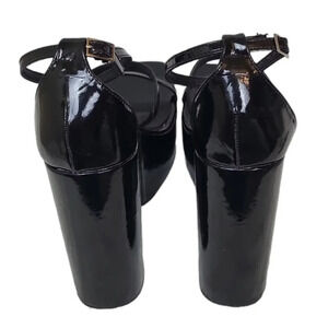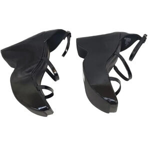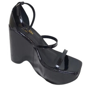 CHASE + CHOLE ASTRA PLATFORM WEDGE ANKLE STRAP SANDAL IN BLACK METALLIC