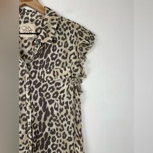 CHASER Animal Print Button Up Ruffle Sleeves Lightweight Spring Women’s Sz M