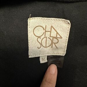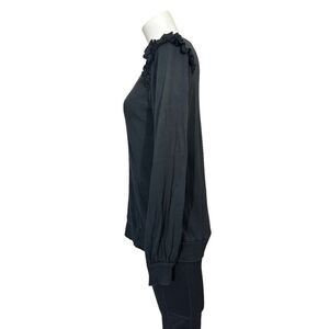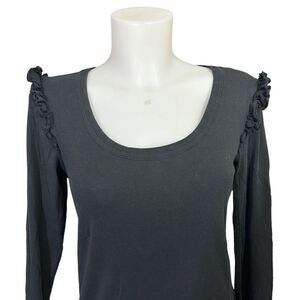 CHASER Black Scoop Neck Ruffled Shoulder Long sleeve Top in medium Cotton