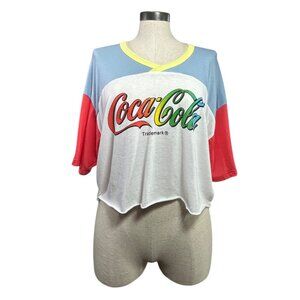 CHASER COCA COLA Graphic Crop Tee S White Colorblock VNeck Oversize Cotton Blend