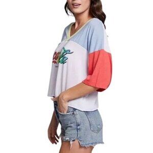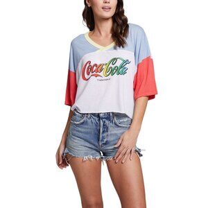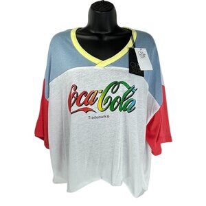 CHASER COCA-COLA Graphic Crop Top Sz L White Colorblock VNeck Cotton Oversized