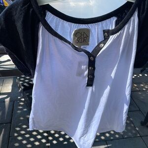 #Chaser #RaglanTop #Henley #CasualTee #TwoTone #GrayAndWhite #CapSleeves #Comfortable #EverydayWear