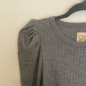 CHASER Grey Waffle Knit Puff Sleeve Long Sleeve Thermal NWT
