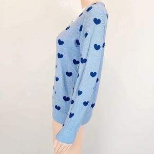Stylish blue sweater with heart pattern. Perfect for casual wear.