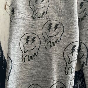 Chaser Kids Drippy Smiles Sweatpant recycled cozy knit. There is something unexpected about these ultra cool Chaser pants. Super fun and Bold. Pair it the the smiley pullover, my son’s go to outfit. Deconstructed knee patches for added style.