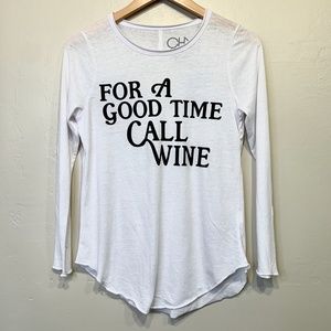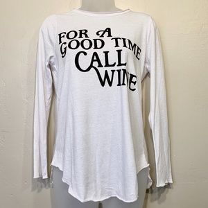CHASER NWT "For A Good Time Call Wine" Spellout Logo Raglan Long Sleeve Crew Neck Curved Hemline Side Slit Hem Wine Tasting Vineyard Vacay Valentine’s Day Date Night Day Date Bachelorette Party Comical T-Wine Humor Comfy Cozycore Casual Shirt