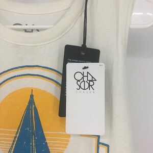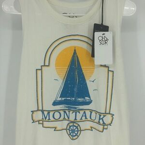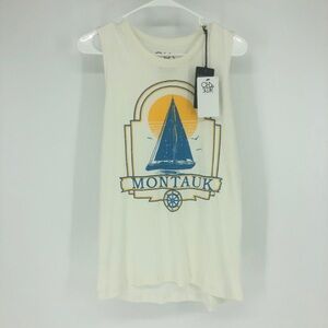 Chaser Montauk New York Beach Muscle Tee Tank Top Sleeveless Shirt. New with tags. Size Extra small, small, and medium. Yellow and blue sailboat.