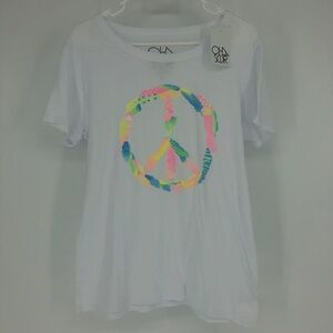 CHASER NWT PEACE SIGN WATER COLOR GRAPHIC TEE WHIT