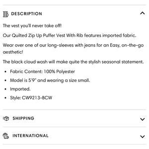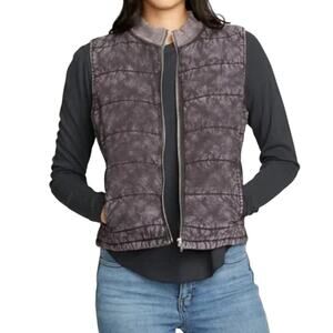 CHASER REVOLVE Quilted Mock Neck DENIM Puffer Vest Black Cloud Wash Grey Small