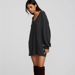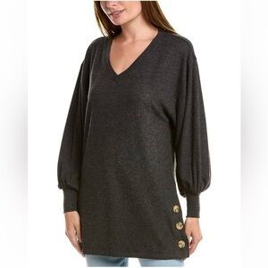 CHASER Recycled Knit V-neck Tunic Button Side Seam Balloon sleeves Size M NWT