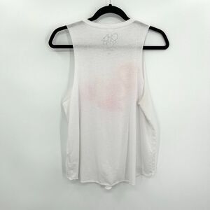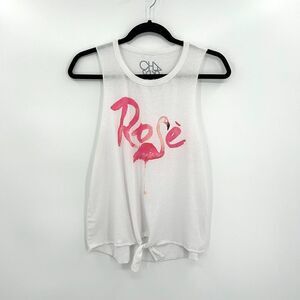 CHASER White Pink Flamingo Rose Crop Front Tie Summer Tank Top Size Medium