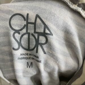 Chaser. Drawstring hoodie with hi-lo hem, slightly cropped, lightweight fabric.