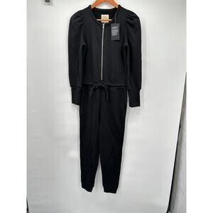 CHASER x EVEREVE NWT Puff Sleeve Zipper Front Jumpsuit in Black // XS