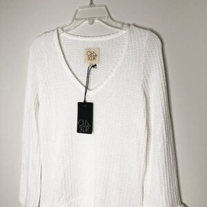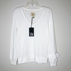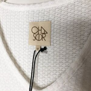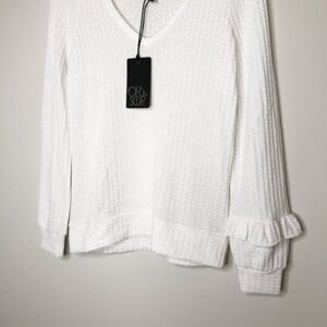 CHASER Thermal Sparkle Ruffle V Neck Tee