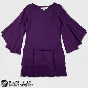 Chasing Fireflies Cascade Sleeve Drop-Waist Dress in Eggplant Purple Girls Size 4