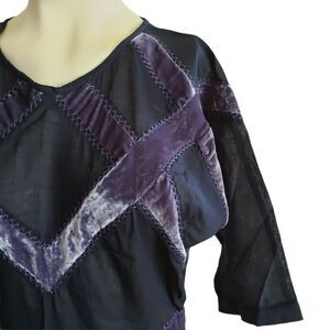 Fabric: 100% Cotton (body) & 100% Silk Velvet (strips)
